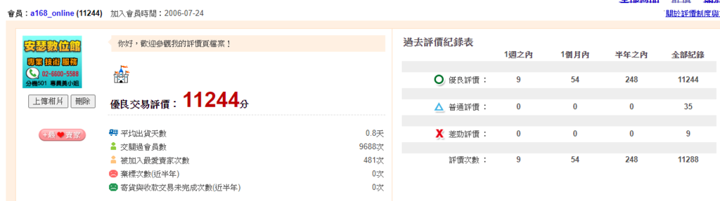 若總評分數如果超過百、千、萬,越高,代表這賣家歷史越悠久,成交越多,越不可能作假,也越能信任!