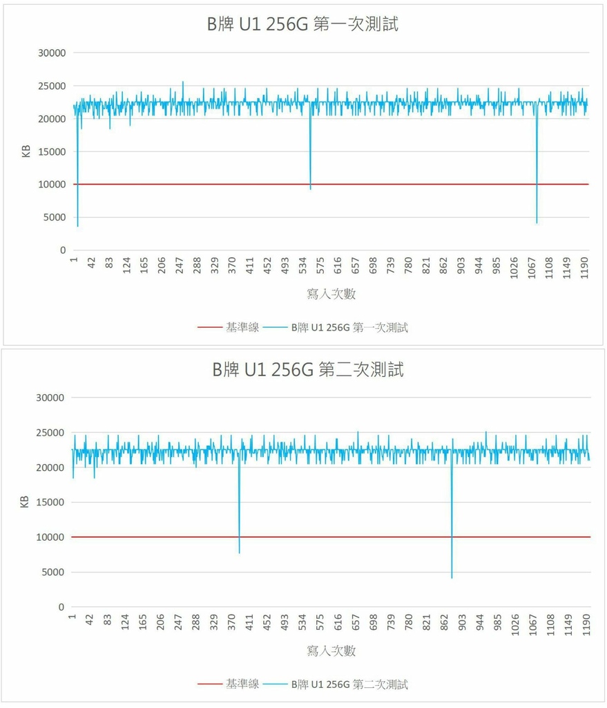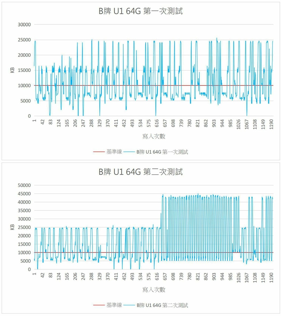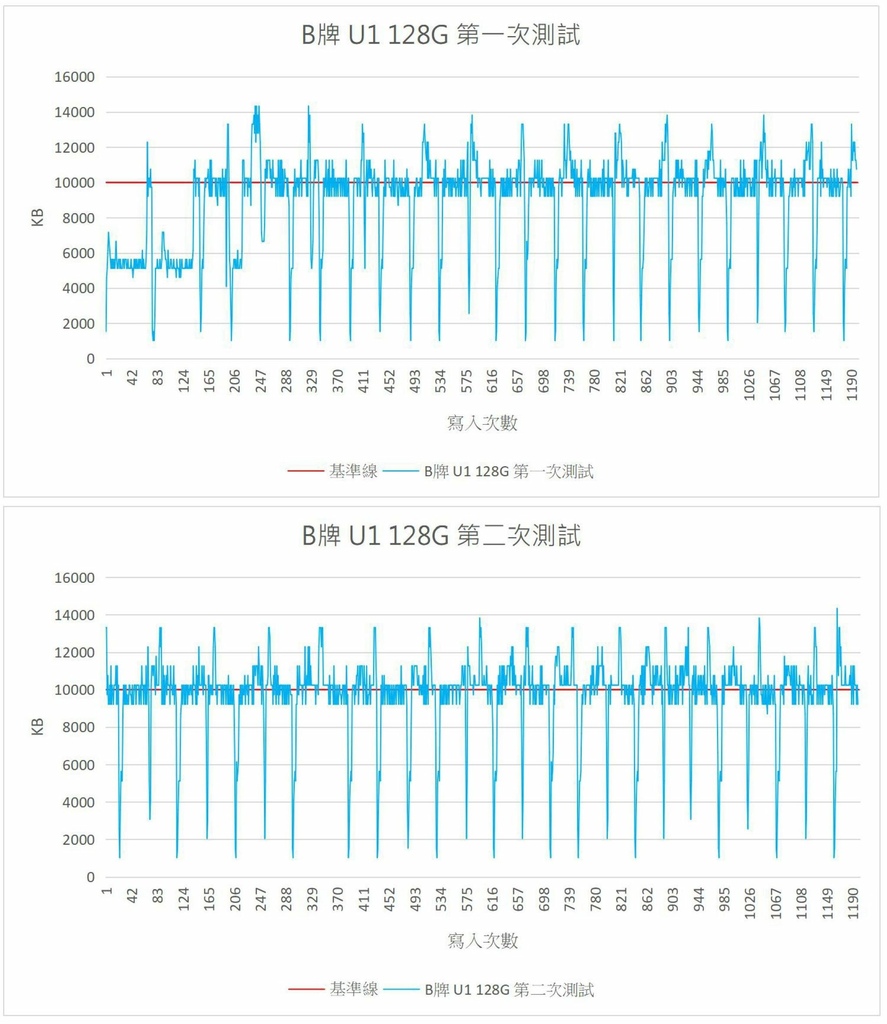 5.如上,同一品牌,不同容量,測試結果也有相當大差異。這點也增加了測試的複雜度。小編懷疑,是不是複雜到每批用料的好壞都不一致,都會影響讀寫品質呢?