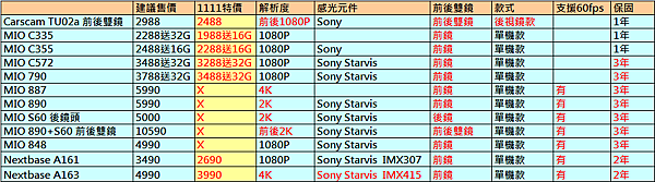 安瑟2021年 雙11 推薦的行車記錄器機型如下表,推薦理由請往下參考: