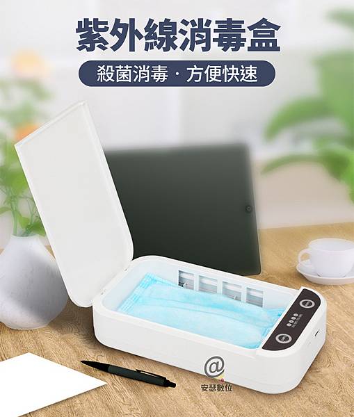對抗COVID-19疫情尚須視為長期作戰,「紫外線消毒盒」利用紫外線殺菌,無須擔心酒精味刺鼻或是皮膚接觸不適,更不用擦拭水痕,是酒精消毒外的另一個好選擇!