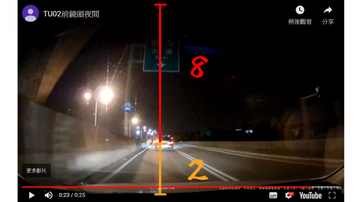 2.後鏡裝太低,天空比地面又是極誇張的 2:8, 看起來幾乎快貼著地面。這造成行車記錄器後鏡頭角度完全對著後方車子的大燈,這樣的情況任何機器都無解。